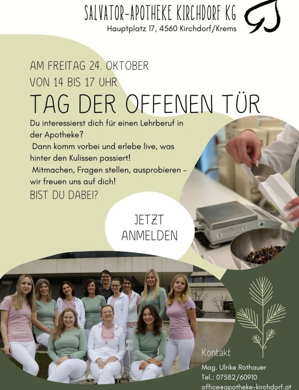 Tag der offenen Tür für Lehrlinge Du interessierst dich für den Apothekenalltag und möchtest wissen, was dich in einer Lehre bei uns erwartet? Dann... Weiterlesen