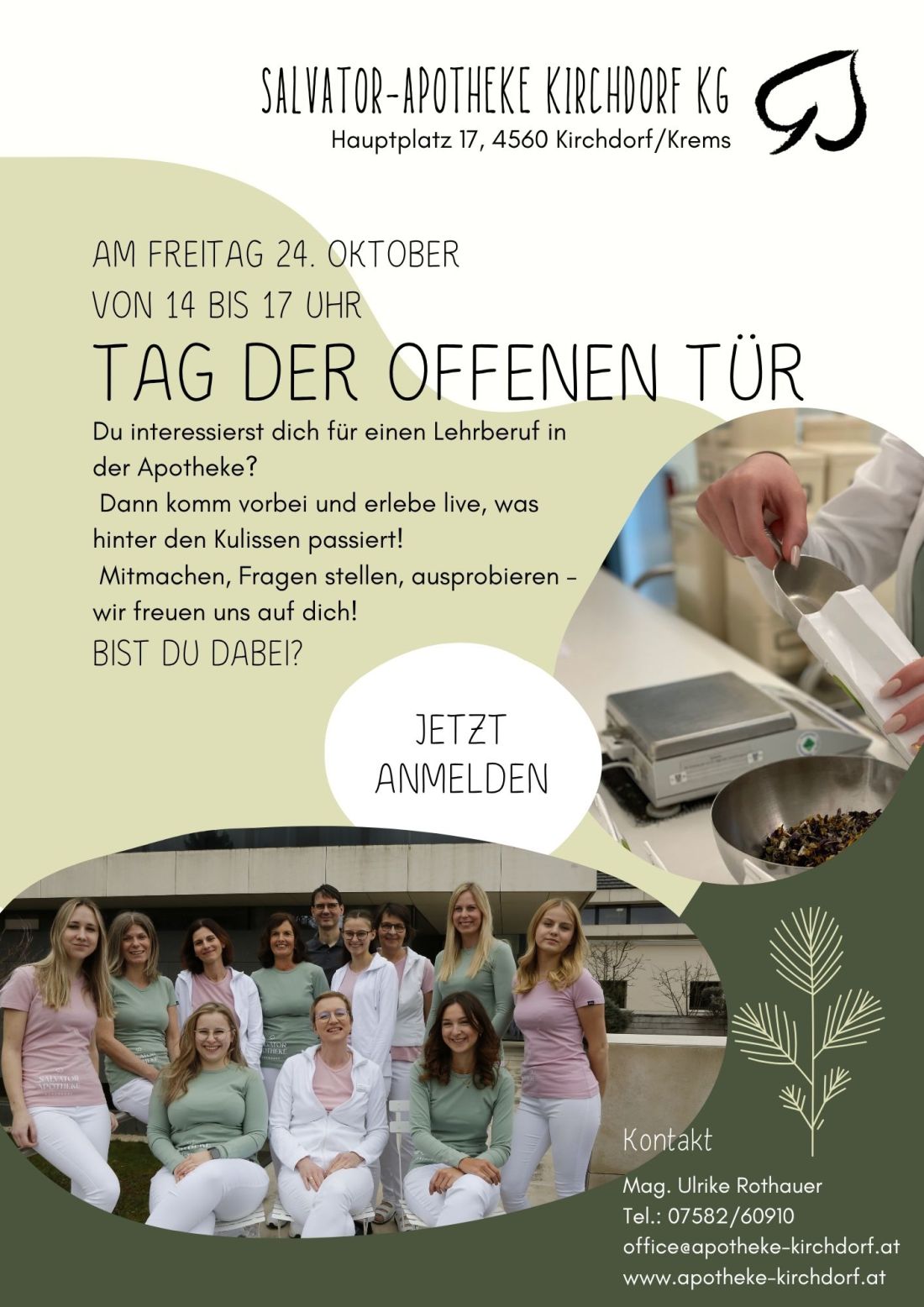 Du interessierst dich für den Apothekenalltag und möchtest wissen, was dich in einer Lehre bei uns erwartet? Dann komm vorbei!